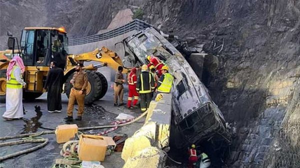 সৌদি আরবে সড়ক দুর্ঘটনায় ২২ ওমরাহ যাত্রী নিহত হয়েছেন। নিহতদের মধ্যে আট বাংলাদেশি রয়েছেন। সোমবার দেশটির আসির প্রদেশে ওমরাহ যাত্রী বহনকারী একটি বাস উলটে আগুন ধরে গেলে এ দুর্ঘটনা ঘটে। আরও পড়ুন