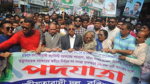 খালেদা জিয়াসহ কারাবন্দিদের মুক্তি, বিদ্যুৎ, গ্যাসসহ নিত্যপণ্যের মূল্য কমানোসহ ১০ দফা দাবিতে বরিশালে পদযাত্রা করেছে বিএনপি। শনিবার দুপুরে নগরীর সদর রোডের বিএনপির দলীয় কার্যালয়ের সামনে থেকে এ পদযাত্রা শুরু করে আরও পড়ুন
