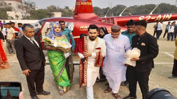 বাবার শেষ ইচ্ছা পূরণ করতে গিয়ে হেলিকপ্টারে চড়ে বিয়ে করেছেন গাজীপুরের এক চিকিৎসক। বুধবার বিকালে কয়েকজন স্বজনকে নিয়ে বিসিএল এভিয়েশনের একটি হেলিকপ্টারে উড়ে শহরের শহীদ বরকত স্টেডিয়ামে গিয়ে অবতরণ করেন আরও পড়ুন